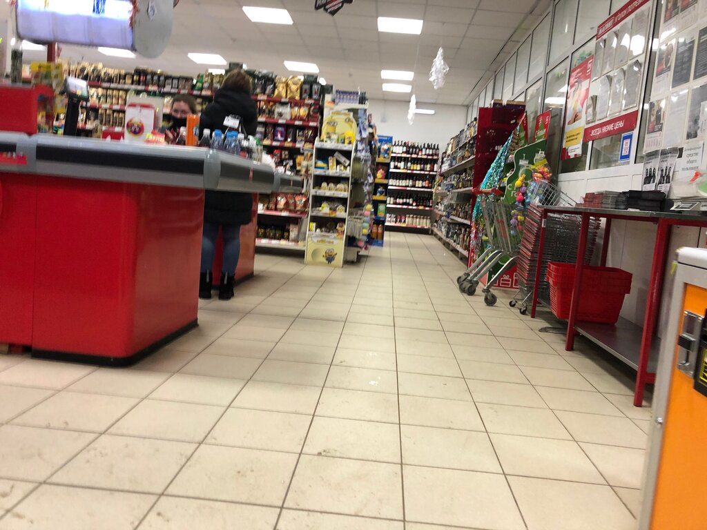 Приличный продуктовый.Всегда можно купить курицу,шашлык есть в наличии почти всегда,чипсы,овощи,фрукты,субпродуктов есть выбор,молочка.Большой выбор шоколадок,печенье,и хозтовары есть.Парковка прямо у магазина.