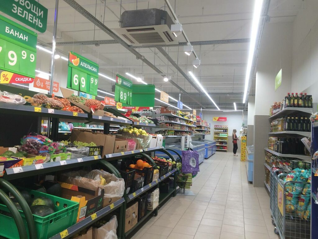 Очень удобно, что магазин круглосуточный. Помимо этого еще много плюсов : чистое помещение, огромный ассортимент, просроченных продуктов не замечала, а персонал всегда готов помочь.