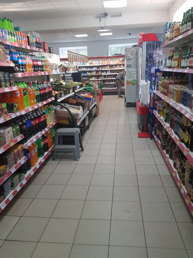 Очень маленькая территория магазина, скудный выбор ассортимента, товар буквально наложен друг на друга, не понятно что и где и к чему относится ценник, узкие проходы. Две кассы из которых работает только одна.