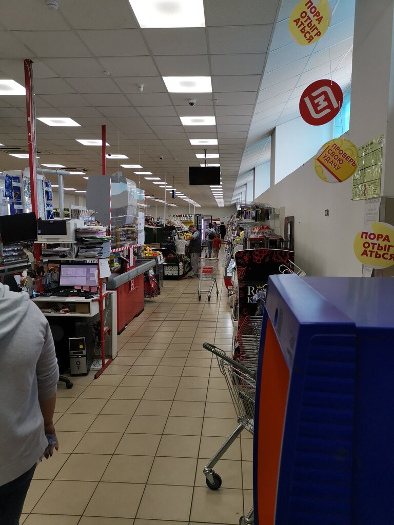 Магазин неухоженный и грязный, корзинки половина без ручек и все в грязи, пыли, липкие, противно брать в руки и складывать в них продукты. Половина касс самообслуживания не работают, обычные тоже, из-за этого очереди.