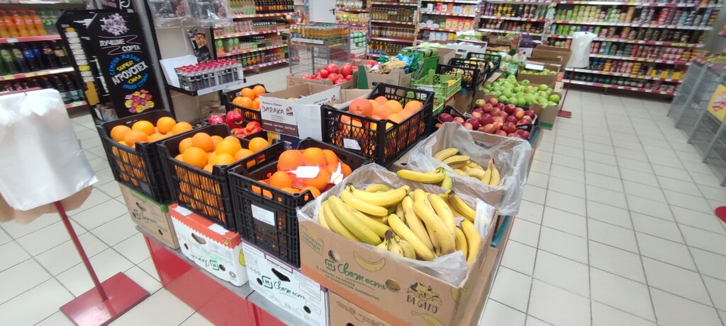 Скудный ассортимент. Мандаринов и лимонов большее время в наличии нет, а когда есть - в плохом состоянии, такие покупать себе не хочется. По остальным позициям тоже не очень, часто каких то позиций просто нет, закончились и так и не появляются. Хотелось бы, чтобы следили за наличием продуктов на полках.