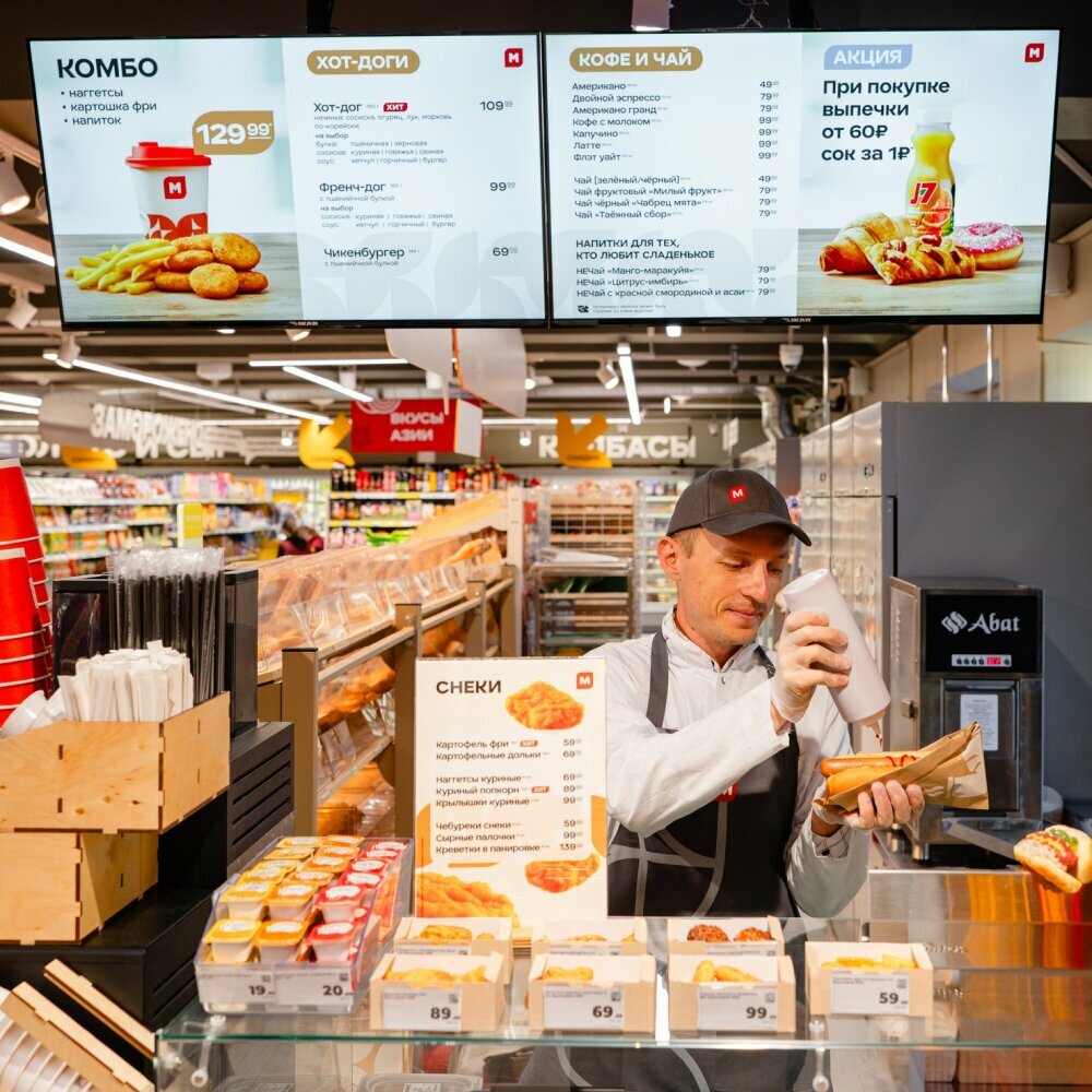 Недавно открылся в новом формате, магазин очень понравился. Появилась выпечка, кофе, хот-доги и фри. Большой ассортимент готовой продукции, есть возможность разогреть и поесть не отходя от кассы.