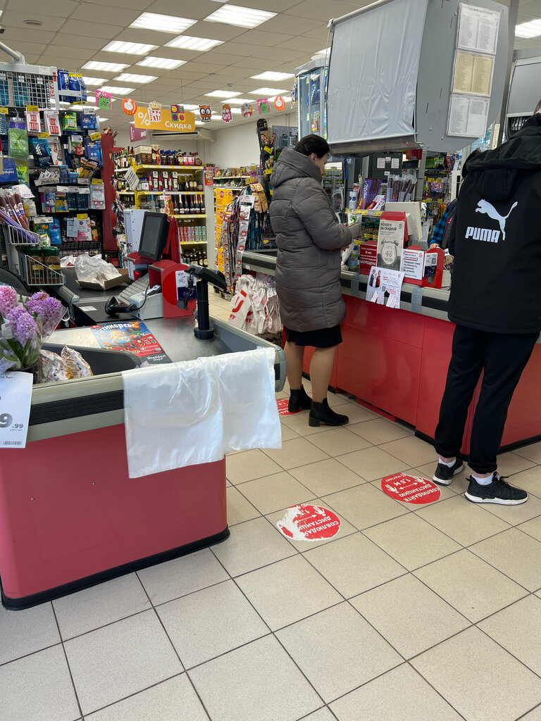 Магнит как магнит в целом, удобно расположен, хороший ассортимент, дружелюбные кассиры. Удобно, что работает до 22 часов. Внутри есть банкоматы, это отдельный плюс