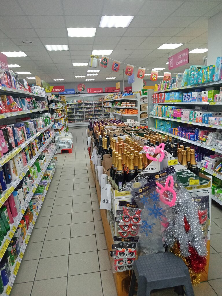 Персонал отвратительный, легче на кассе самообслуживания чем ждать когда продавец сможет вспомнить все комбинации. Ценники вообще ни на что не соответствует действительности. Работает до 23:00, но в 22:00 уже закрыт, кто там старший админ, есть он вообще.