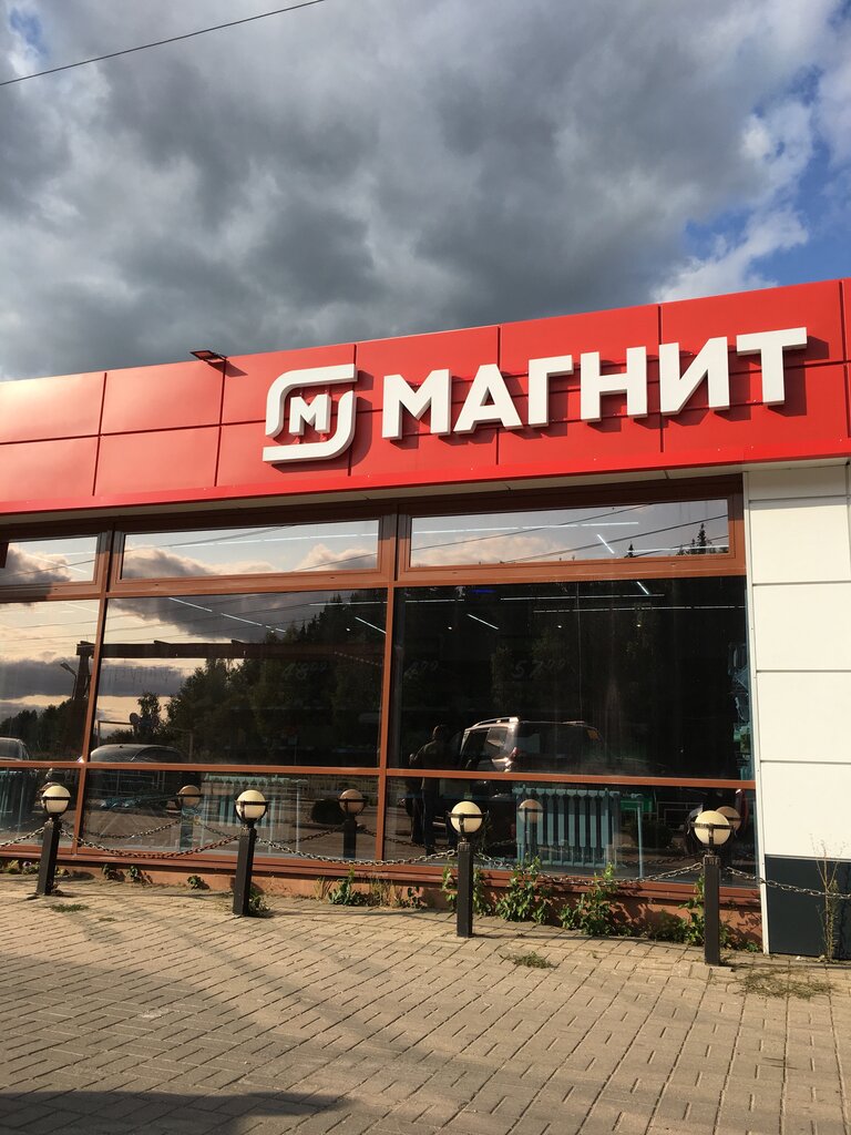 Прекрасный магазин, большой, чистый и аккуратный, вежливый персонал, ассортимент очень хороший, много как продуктов, так и непродовольственных товаров, есть парковка, перед входом одна ступенька, так что можно зайти и с коляской, есть аппарат хватайка на входе. Этот Магнит гораздо лучше чем в Москве!!!