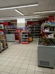 Магазин популярного ритейла в России. Расположен в жилом массиве. Фасад оформлен в корпоративных красно-белых цветах. Подъезд удобный. Рядом небольшая парковка. Входная зона включает автоматические двери и тамбур. Хорошее освещение. Чистота поддерживается. Торговое оборудование в зале расположено плотно. Проходы между ним не широкие. Тележки из-под поступившего товара убираются из зала не сразу. Плюс товар в таре стоит в проходах. Ассортимент товаров разнообразный и пополняется на полках своевременно. Отдельный небольшой зал с бытовой химией. Прикассовая зона насыщенна сопутствующими товарами. Персонал обученный и вежливый. Обслуживание быстрое. Есть мобильное приложение для заказа с доставкой. Действуют бонусные карты. Табак и алкоголь продаются согласно Закона. Цены средние. Регулярные акции и скидки. Рекомендую!