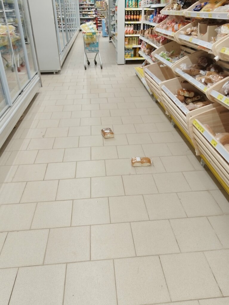 Неприятный инцидент произошёл уже третий раз. Первый - купили свинину, сроки были нормальные а по итогу мясо было тухлое, видимо долго тянули с выкладкой, но больше склоняемся к тому что холодильники были на какое-то время обесточены. Второй - девушки продавщицы бегали по торговому залу друг за дружкой и сносили на своём пути товары. Хлебом кидались, как бы это глупо не звучало... (прикреплённое фото в подтверждение) И третье - была приобретена тушка курицы марки "каждый день", в процессе разделки мяса которой был обнаружен не удаленный лопнутый желечный пузырь, который испортил все мясо, разлившись вплоть до её конечностей. Не рекомендую магазин, отношение к товару продавцов наплевательское, в магазине всегда грязно и плохо пахнет. Отдельная притензия к качеству своей продукции Магнита. Более не посетим этот магазин, хоть и был под рукой.