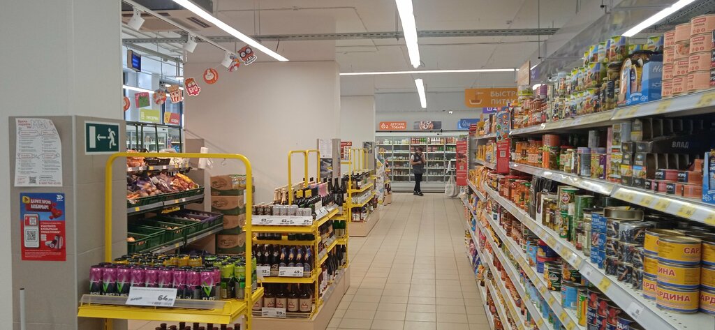 Далеко не лучший магазин. Часто не хватает товара, овощи выбрать сложно, потому что большинство просрочены или сгнили. Вечно работает только одна касса, из-за чего иногда возникают большие и долгие очереди. Чистоту в магазине поддерживают, в этом плане проблем нет, к персоналу вопросов тоже нет.