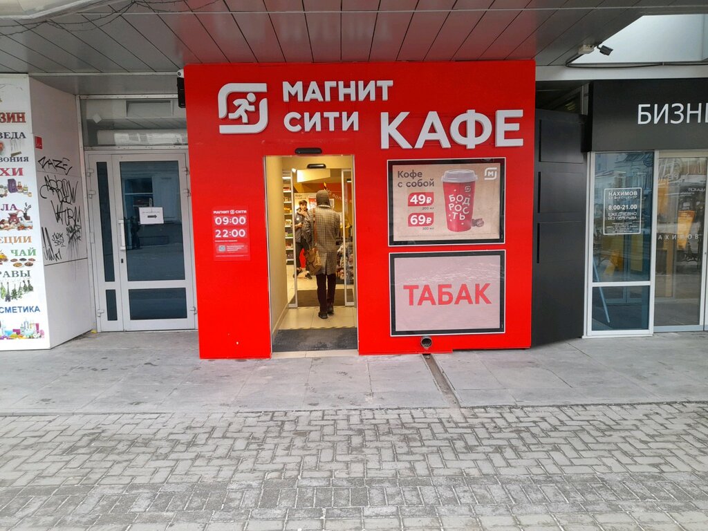 Маленький, но уютный "Магнитик", приятный персонал. Выбора немного, но есть всё нужное. Также в продаже есть табачные нагреватели . Вкусная , недорогая выпечка, чай/кофе) Есть место где посидеть, зарядить телефон, сходить в уборную.