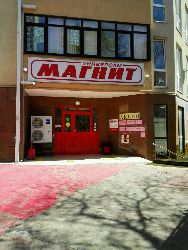 Довольно большая площадь магазина. Неплохой ассортимент товаров. Но в сезон отдыхающих вечером практически пустые полки в хлебном отделе. Продавцы и кассиры молодцы, вежливые и всегда помогут. Когда заказываю доставку магнит из этого магазина-всегда привозят очень быстро и хорошо упакованным.