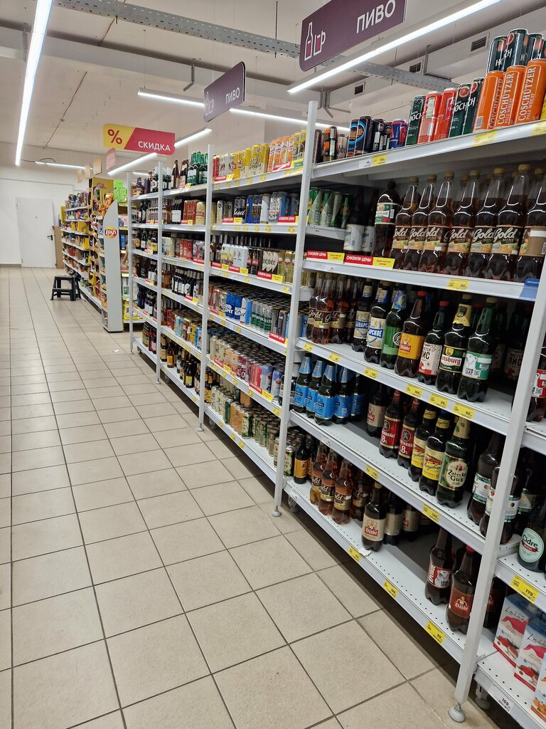 Плюсы: большой ассортимент товаров, качественные товары , свежие продукты , хоршая колбаса, добрый персонал, хорошая атмосфера минусы: их нет к счастью