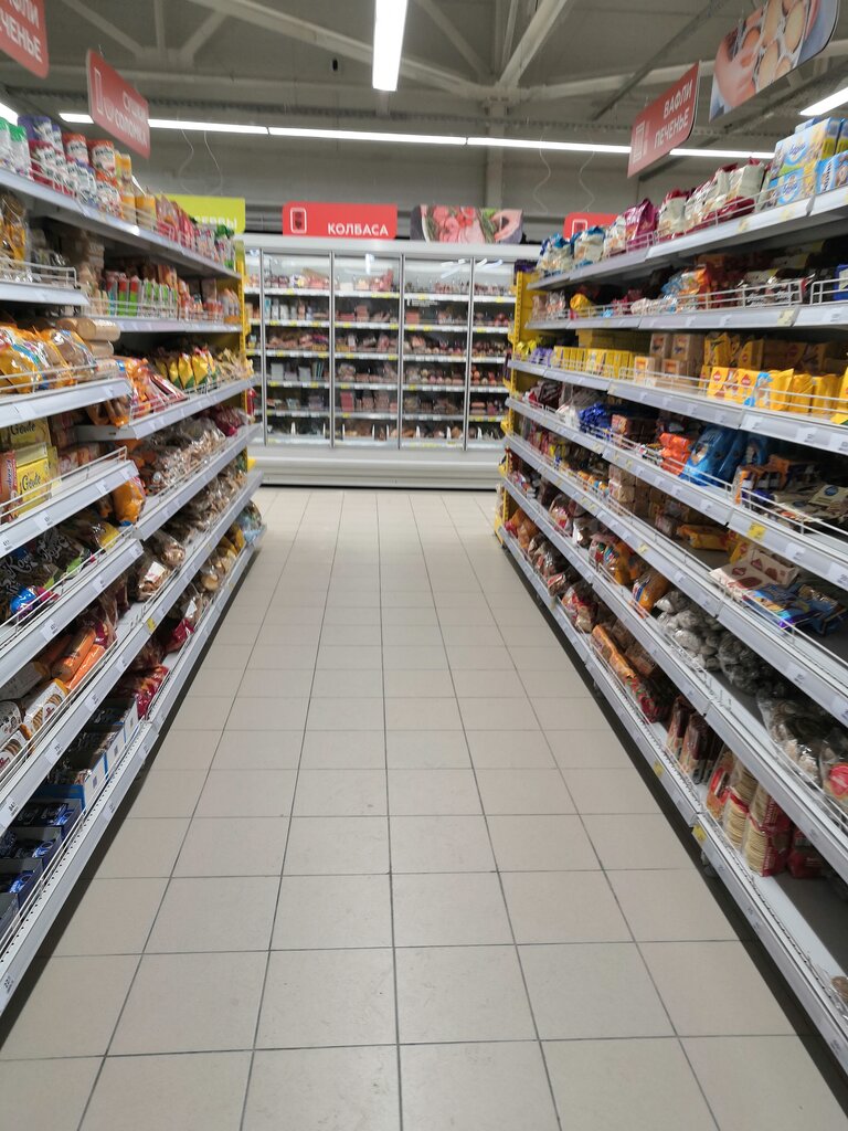 Очень удобно, что в магазине совмещены продуктовый отдел и косметический. Магазин чистый и большой, товары свежие, удобная выкладка. Рядом остановка.