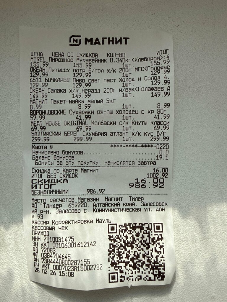 Были проездом в с. Залесово 28.02.26 купили в данном магазине « Магнит» рыбу скумбрию, путассу, салака- холодного копчения. Вся данная рыба оказалась тухлая. 🤢 Не советую данный магазин! Даты стоят свежие, а по факту получается, просто их « перебивают». В Роспотребнадзор заявление написано, дата проверки уже назначена. Уважаемые жители с. Залесово, Берегите свое здоровье! Будьте внимательнее, проверяйте купленные товары в течении нескольких часов.