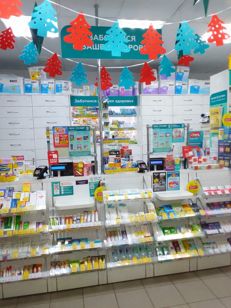 Хорошая аптека. Компетентный и отзывчивый персонал. Возможность получить консультация по препаратам. Адекватные цены. Качественные товары. Широкий ассортимент. Шаговая доступность. Скидки от Магнита.