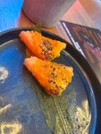 Состав: опаленный ролл Бонито с лососем, темпура ролл с тунцом, гункан спайси краб, гункан креветка, татаки тунец, ролл жареный с копчёным лососем