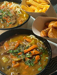 Были в данном заведении в августе 2025 года. Удобно оформлять заказ через терминал, сразу можно посмотреть состав блюд, фото, количество калорий. Заказывали том ям с морепродуктами, вок с курицей и овощами, хычин с сыром и картофелем. В баре брали холодный чай персик- маракуйя и лимонад в бутылке. Приготовили блюда в течении 15 минут. И том ям, и вок оказались очень острыми, нам такое нравится, поэтому съели с удовольствием. Холодный чай "остужал" горение. Хычин оказался на столько вкусным, что заказали ещё один с собой. Его упаковали в фольгу, коробку и в большой крафтовый пакет, как полноценный заказ. Рекомендуем данное место!
