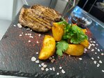 Все очень вкусно , красиво и уютно , персонал приветливый 👍👍👍 Заказывали салат цезарь , очень вкусный , а соус это вообще восхитительный , стейк 🔥