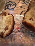 Очень старая выпечка, высохшая. Потом ещё и дно у друга прорвало. Больше не приходим