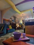 Кофейня невероятно уютная и атмосферная. Здесь хочется замедлиться, взять чашку кофе и просто наблюдать, как за окном течёт жизнь. Интерьер поражает вниманием к деталям: мягкие кресла, приглушённый свет, картины и арт-объекты на стенах, старое пианино и даже сухоцветы — всё это создаёт ощущение творческого уюта и уединённости. Звучит спокойная, ненавязчивая музыка, которая не мешает разговорам и размышлениям. Кофе отличный — ароматный и сбалансированный, чувствуется, что готовят с душой. А вот wok вышел не так удачно: курица немного пересушена, само блюдо показалось пресноватым, а соли на столе не оказалось, чтобы подправить вкус. Тем не менее, место оставило очень приятное впечатление. Атмосфера и уют перевешивают мелкие недочёты кухни — сюда точно хочется вернуться, чтобы снова насладиться кофе и спокойствием.