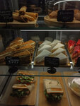 Очень милое место, нравится интерьер, вкусный флет уайт, благодарю, что можно выбрать бОльший объем 🤗 Сендвичи выглядят супер свежими и вкусными🤌 Мои придирки: живые растения создали бы больший уют, чем искусственные) И как будто заветренная или подсохшая верхушка у клубничных чизкейков. Хотела взять чизкейк Нью-Йорк, но не понравилось как выглядит его текстура, есть где купить лучше, ну и на одном сверху был чуть конденсат (это не отменяет возможности, что они очень вкусные, просто мои личные причины не покупать) Цены нормальные, средние 👍 В общем мне главное кофе, а оно вкусное 🤌
