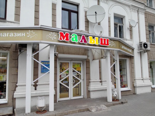 Дополнение от декабря 24 - в помещении во всю идёт ремонт, говорят, что тут будет общепит. Что и не удивительно. Дополнение от октября 2024 - Малыш закрывается. Идёт распродажа. Что будет теперь в этом помещении - загадка. Магазин детской одежды и всяких малышковых девайсов. В этом качестве работает с 90-х, являясь генерацией предыдущего магазина - Евротрейд, который, в свою очередь, стал наследником «Бакалея-Гастрономия», что работал в этих стенах с момента ввода помещения в эксплуатацию в далекие 40-е прошлого века. В том магазине было все, включая кондитерский и штучный отдел. Впрочем, в «Малыше» тоже все есть и магазин явно на месте.