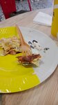 Delicious pancakes, although a little overdried. There are ingredients that are not listed on the menu, for example, in pancakes with bacon and cheddar in the middle there is a whole bunch of carmelized onions, and in pancakes with ham, cheese and mushrooms there is dill, which interrupts the taste of the rest of the ingredients, it seems to be visible on the website, but you need to go to the restaurant with binoculars to see them. The compote and tea bag are super.