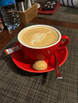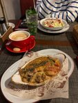 Приятное заведение. Брала гамберетти аль форно - изумительное блюдо: креветки, цукини и грибы. Вкусно! Кофе капучино взяла фирменный - Мама Рома, правда я думала, что рисунок на кофе будет такой, как показан на фото, но было сердечко) Вкус кофе от этого, конечно же, не зависит - кофе был вкусным! А ещё официант Александр понравился - заботливый такой.