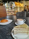 Симпатичная пекарня со вкусной выпечкой. Правда, в тортике попались ореховые скорлупки - не теряйте бдительность! А так выбор всяких пирогов и пирожков, пирожных, десертов и т.п. хороший. Цены средние, кофе приличный, интерьер незамысловатый, но чисто, светло и вполне уютно.