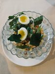 Суп-лапша из домашней курочки с перепелиным яйцом и зеленью