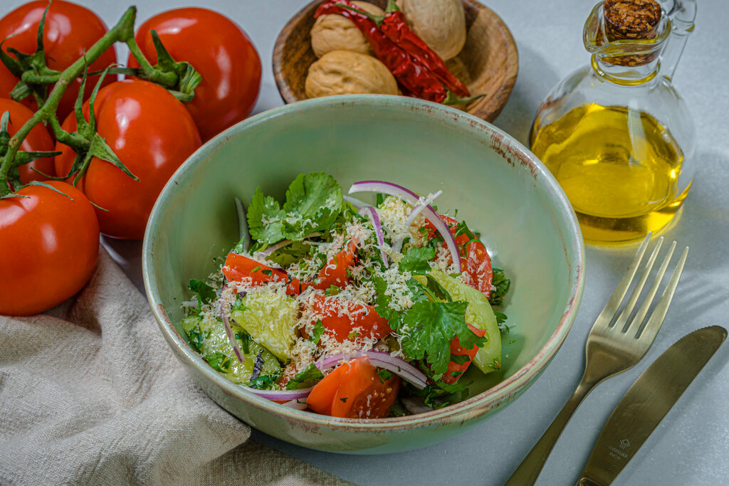 пхали из свёклы, шпината, перец-гриль с сыром фета, кручёный баклажан с надуги и баклажан с пастой из грецкого ореха