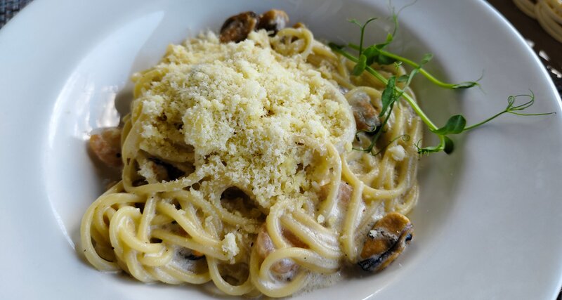Ожидание просто вечность. При загрузке 2 стола ждали приготовление час. Том ям ужасен, порция мини (прикладываю фото нетронутого супа) - вкус никакой, салат Цезарь с креветками за почти косарь ужасен - сгоревшие сухари, креветки не почищенные, грязные. Фу. Просто негатив после посещения этого заведения. Заказ приняли потом, через 15 минут выяснилось что не смогут приготовить позиции. Если хотите насладиться городом курортом, то обходите это место, а то насладитесь ожиданием невкусной еды.