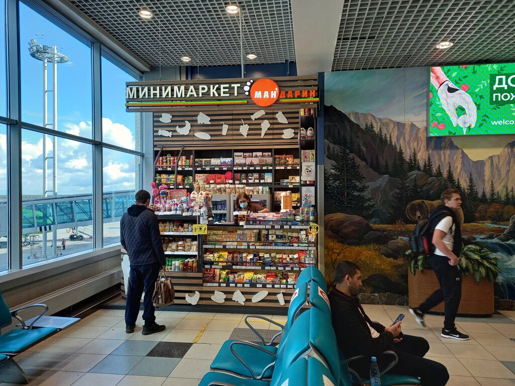Обычный магазин, расположенный внутри аэропорта. Цены космические, оформлен как все остальные, ассортимент узкий (это же минимаркет) с одноимённым цитрусовым не имеет ничего общего, кроме названия. Абсолютно бессмысленный магазинчик, если бы его не было, ничего негативного для вылетающих не произошло, при этом стало бы просторнее, т.ч. вся его прелесть заключается лишь в создании 1 рабочего места продавца, который зарабатывает этим на жизнь.
