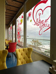 Из плюсов - красивый вид на море, симпатичный интерьер. Заказала 1 чебуреки и кружку пива. Чебурек принесли через 20 минут холодным. Я отказалась от такого, ибо чебуреки как пирожки едят горячими. Официант предложила разогреть в микроволновке( Рядом сидела пара, те, вообще ждали долго пиво и пробегающую официантку спрашивали - а где наши чебуреки? Это при том, что кафе было заполнено на 30 %. А если заказать более сложные блюда?! Вообще в Крыму с общепитом большие проблемы - не вкусно и дорого.