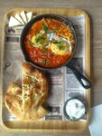 Сегодня посетила это кафе впервые,посоветовала подруга, и осталась довольна!Приятная атмосфера,хорошее обслуживание и быстрая подача.А блюдо не только красиво выглядит,но и вкусное! Подали всё горячее,даже лепёшка была теплая и ароматная с хрустящей корочкой😋!Спасибо за вкусный завтрак! Обязательно вернёмся к вам ещё! Кстати до 12:00 оказывается скидка 40% на завтраки!А вообще цены очень даже приемлемые!
