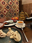 Заехали случайно без брони, нас проводили за комфортный стол, очень приятная атмосфера и интерьер, мы заказали вкуснейший зеленый чай с мятой, хинкали с телятиной, салат Тбилиси, суп хашлама,лагман и три соуса, мы настолько вкусно поужинали, прекрасно было каждое блюдо, хинкали поторопились принести и они непроварились, нам все переделали, извинились, принесли тройной десерт в качестве извинения, мы совершенно не расстроились, нам настолько все понравилось, что мы сюда приедем снова и не раз! Очень спокойная атмосфера, приятная музыка, вежливый официант, очень все нам понравилось! Спасибо вам большое!
