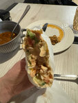 Место это выбрала по отзывам, когда приехали прогуляться по Клину. Заказали Люля из свинины/говядины, шурпу, картошку на мангале, шаурму. Единственное, что стоит своих денег и вкусно - люля. Шурпа жирная, вместо мяса- сплошной жир, весь выловила на тарелку. Шаурма средняя, на вкус курица была варенная. Лепешка недельной давности по ощущениям, дубовая и невкусная. Про картошку вообще забыли, потом подали, тоже вкусная. В помещении, хуже чем в придорожном кафе- холодно, весь дым внутри. Честно, ожидала лучшего. Уверена, что шашлык вкусный, остальное не стоит внимания. Еда на вынос.