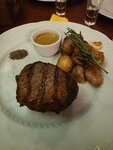 Ростбиф, маринованный в масле с чесноком и обжаренный на гриле до средней прожарки. Подается с соусом из тунца