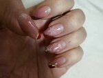 Удобное месторождение, приятная и вежливая администратор 👍. Взяла визитку, позвонила, записалась на маникюр с покрытием. Сказали цена 2000 ₽.. Записалась (к сожалению к мастеру которая рисует меня не смогли записать но порекомендовали другую мастерицу, хоть и не рисует но делает качественно). Пришла, мастер апаздывала немножко но это не страшно, мне предложила администратор горячий чай, пока чаёвничала и мастер прибежала (за опоздание извинилась это +!). Показала картинки с маникюром который хочется, оказалось что у мастера нет многих цветов в палитре и золотого литья. Выбрали дизайн под ту палитру которая имеется. Мастер и администратор очень старались угодить, бегали несколько раз в магазин чтобы купить недостающие литьё золотое или что-то наподобие (жирный + за заботу и старание!!!). Мастер Надежда мама только вышедшая из декрета. Как человек очень приятная в общении, милая, мнимательная. Как мастер очень окуратная, щепетильная, работу делает качественно но не хватало материалов при себе в наличии (((. Я пришла с ногтями в УЖАСНИШЕМ состоянии, поломанные, ипотресканые, надорванные, очень сильно отросшие, маникюр носила ажт40 дней и переносила. Надежда всё починила, восстановила, нарастила, укрепила!!! Кутикулы обработала очень бережно, аккуратно, без травм и очень качественно ❤️‍🔥. На работу ушло аж 4 часа ( реально было над чем попыхтеть!!!). Цена в итоге за всё, вышла больше 3000 но сказали просто 3000 (я ещё пыталась торговаться но не получилось 😅, не на базаре ведь 😅😜. Девочки извините если что 🙏)))😉). В общем ушла я в полне довольная и счастливая. Атмосфера в салоне приятная, коллектив тоже, хочется туда возвращаться ещё! Однозначно рекомендую! Хотела девочек отблагодарить хорошим шоколадом 🍫, пошла купила прибежала а их нет 😢. Не знаю куда они подевались, вроде начинали после меня делать маникюр администратору но спустя пару часов их уже небыли на месте(((. Жаль, 😥 хотелось сделать тоже приятно девочкам так как сидели все голодные 🤤 голодные и говорили о еде и вкусностях 😊 разных... Ждать их возвращения к сожалению небыли времени ⌛ (((((, шоколад пришлось отдать сыну. Первые 2 картинки это с интернета то что мне изначально хотелось, следующие фото это то что у нас вышло. Очень жаль что не сфотографировала ногти до перед коррекцией. В конце прикрепляю то что было с моим маникюром за пару дней до посещения салона!))).