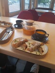 Вместо сендвича с ветчиной и сыром принесли домашний бутерброд с яйцом, куском колбасы, салатом и томатом. Чай не заваривался. Официант не знает меню. Мы оплатили только чай и сендвич и ушли.