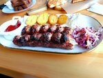 Вкусный борщ. Шашлык как повезет. Хачапури на мангале совсем плох. Видимо готовят вертикально, и сыр весь стекает вниз. Хинкали вполне вкусные. Люля из баранины не готовят. Из минусов: цена как в приличном ресторане, а до ресторана как до луны.