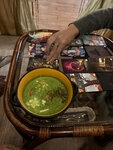 Сидели на подушечках за низким столиком, очень атмосферно и уютненько. Поиграли в настолку и вкусно поели! Массала чай чудесный Взяли суп со шпинатом, лепешки, фалафель, бургер и десерт, всё очень вкусно🔥 Из десерта, дочери понравился манго, мне черника Массала чай, здесь вкуснее, чем в Аюрведе. Рекомендую это кафе