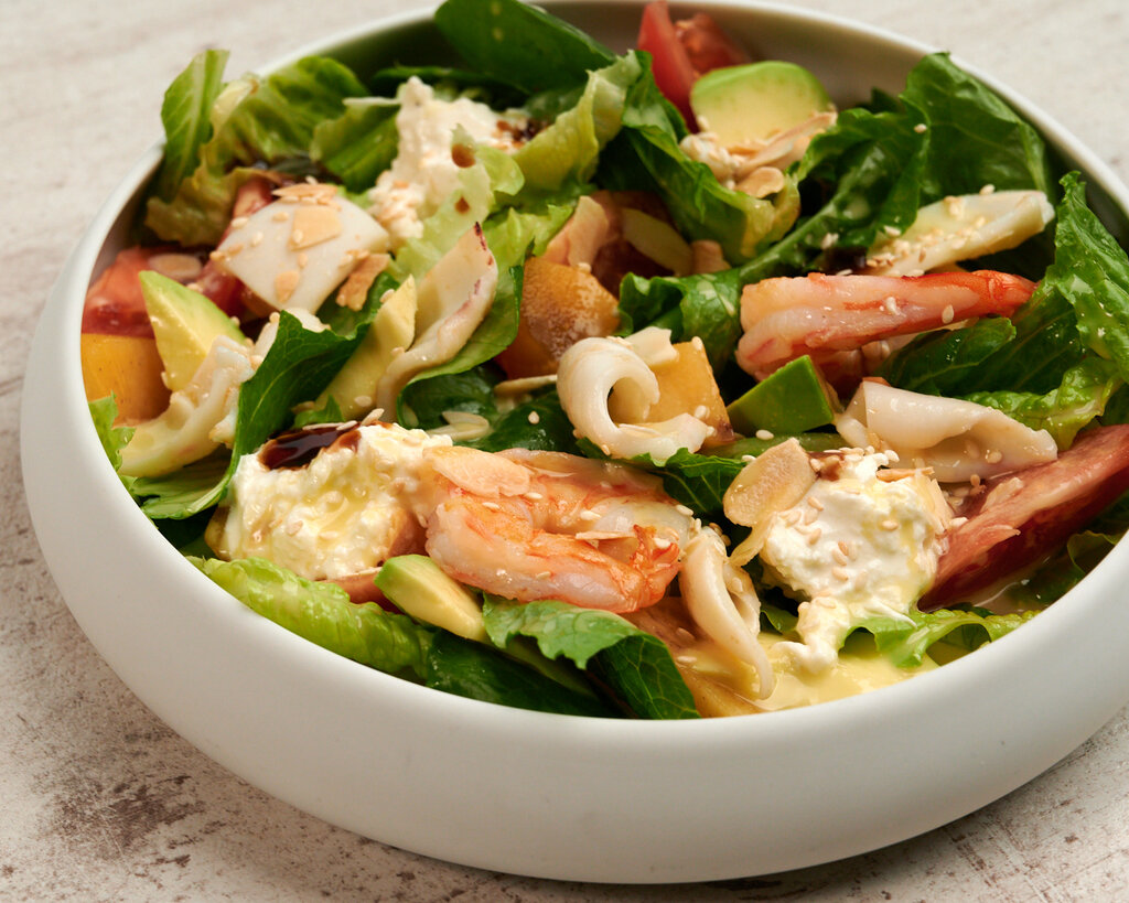 Салат с креветками и кальмаром