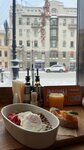 О, этот прекрасный и любимый Питер! Не знаю, где ещё можно выйдя из гостиницы "с ранья", позавтракать вкусно и в прекрасной обстановке. Где даже без личной просьбы принесут американо в небольшом объеме и со сливочником с кипятком - кто какую крепость предпочитает - чаще об этом приходится просить. Выбор блюд большой, на любой вкус, цены вполне приемлемые. К сожалению, пшенная каша из ассортимента " петербургский завтрак" имела слегка затхлый привкус, но свежие ягоды компенсировали (поэтому не пять звёзд)