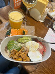 Странная посадка, освобождаются места с диванами, но не хотят пересаживать на диваны. Для кого-то более ценного места берегут? Просто настояла, чтобы нас пересадили, т.к. ребенку реально трудно сидеть на стуле долго (по здоровью). А время ожидания одного блюда от получаса. Вобще неприятный осадок. В целом еда нормальная, напитки норм, чай асам великолепный. На вынос еда не такая, хотя взяли домой тоже, что ели там. Это очень странно. Пересоленая и переперченая котлетка, только что ели в ресторане и была вкуснейшая. Как так? Очень вкусный десерт брауни. Кто любит сладкое, тому понравится. Вобщем если вы парень с девушкой, то вас и усадят удобно и скакать вокруг будут. А если мать с ребёнком, то не факт. Ощущали себя вторым сортом. Да, цены очень очень высокие, но надо понимать, что это Невский пр. Чек примерно 5000р. В яндекс картах написано 1500р, но это не так. Придём ли мы ещё, возможно, хотелось бы попасть на завтрак и на обед. Посмотреть как обстановка в другое время.