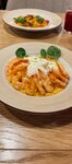 Хороший итальянский ресторан с разнообразным и вкусным меню, порадовал большой выбор пасты. Уютно, подойдет для посиделок вдвоем и для семейной вылазки. Заказывали пасту в сырной головке пармезана, ожидала шоукитчен, думала при мне будут катать мою пасту в сыре, но этого случилось, наверное я зажралась, но было бы прикольно. Но сама паста была вкусная. Также брали стейк, просили прожарку медиум-велл, но принесли веллдан, за это сняла звезду, но мясо было мягкое, сочное и вкусное, несмотря на то, что это был альтернативный отруб. Следующее блюдо - салат с креветками и страчателой, креветки большие и приготовлены как надо. Ризотто с креветками также порадовало. На десерт - тарт-татен пробовала первый раз, но показалось как будто это немного не тот перевернутый десерт, которого я ожидала, может я не права, но он оказался вкусным. Посетила бы я этот ресторан еще раз, однозначно да, рекомендую)