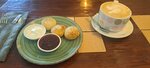 Завтракали. Нормально, но без изысков. Принесли объемное меню, для небольшого кафе, разброс по блюдам, очень странно. А полная посадка., как будут справляться. Загромождение какое то, очень много лишнего, не создает ощущение уюта, наоборот, хаоса, и хочется разобрать лишнее. Ребята обслуживали хорошо, отдельное спасибо! Стулья шатаются, проходилось держать баланс, и страх свалиться, не дал спокойно позавтракать, так не должно быть. Потенциал хороший, но смазалось впечатление от посещения. Верю, Ваша команда справится с недочетами.