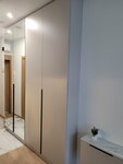 Я заказывала в студии «Мария» на Комендантском шкафы для очень маленькой студии. 2 шкафа нужно было расположить так, чтобы один находился в коридоре, а другой, стоящий вплотную к нему - в комнате. Учитывая то, что коридор очень узкий, важно было так подобрать материалы, цвет, высоту и глубину шкафов, чтобы зрительно не уменьшить помещение и в то же время предусмотреть достаточное место для хранения вещей внутри шкафов. Ещё хотелось сделать узкую тумбу под телевизор и хозяйственный шкафчик в санузле. Размер студии диктовал свои условия, дорог был каждый сантиметр. Со всеми этими задачами дизайнер Елена Болтенкова справилась блестяще. В процессе обсуждения все детали были выверены досконально. Елена предложила качественный материал фасадов очень приятного светлого оттенка, а для шкафа в узком коридоре – зеркальные двери, чтобы зрительно углубить пространство. Высоту шкафов решили сделать под потолок. Шкафчик для санузла Елена изобретательно вписала в имеющуюся нишу, обыграв заходящий в неё и вроде бы мешающий полотенцесушитель. Заказ был выполнен точно в срок, так же, как доставка и сборка. Всё чётко, аккуратно, качественно. От души благодарю компанию «Мария» и лично Елену Болтенкову за отличную работу и хорошее настроение от результата. Отдельное спасибо установщику Сергею Шмонову за виртуозную сборку в непростых условиях, мастерство и смекалку. Обязательно буду рекомендовать компанию друзьям и знакомым.