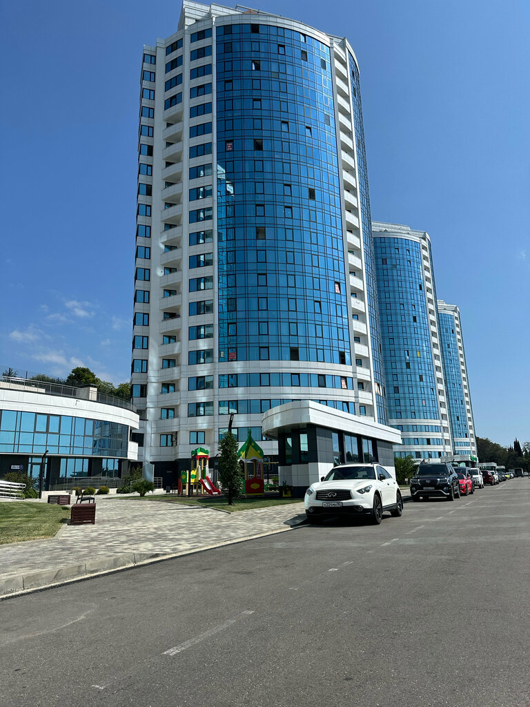 Визитная карточка Сочи, видно из далека (с самолета, с федеральной трассы, с моря, и вид - прекрасный!!! Отличное расположение. Не далеко до аэропорта до Адлера и Сочи! Все необходимое есть на территории и супермаркет, аптека, зоомагазин, хозтовары, стройтовары, Яндекс маркет, Озон, Wb, шикарная инфраструктура, всегда свободная парковка на паркинге, шикарный бассейн не большой но территории прилично выделено под него. Зону отдыха, зону ресторанчика, быстро, вкусно, безопасно! В целом все очень чисто современно, стильно! Управляющей компании большой плюс и благодарность за отличную добросовестную работу!