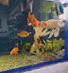 The marine world offers a huge range of seafood and other delicacies. It's always nice to go shopping. A large aquarium with fish is the decoration of the store