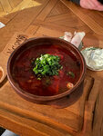 Симпотично, приятный интерьер, вежливый персонал, цена выше среднего(борщ 320 р, гр.суп 320, булочка 33 р), порции очень большие, подача 20 мин. Грибной суп был неплох.